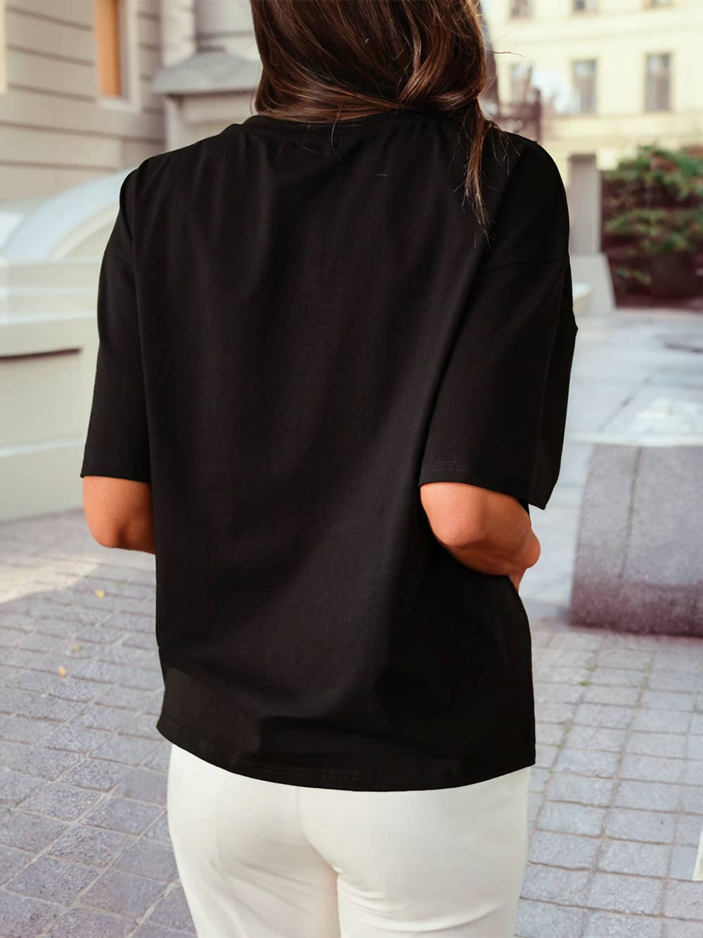 Crafted with a relaxed silhouette and slight stretch, it’s ideal for warm-weather outfits, layered looks, or lounging in style. Whether you're running errands or meeting friends for coffee, this versatile top adds a playful pop to your day.