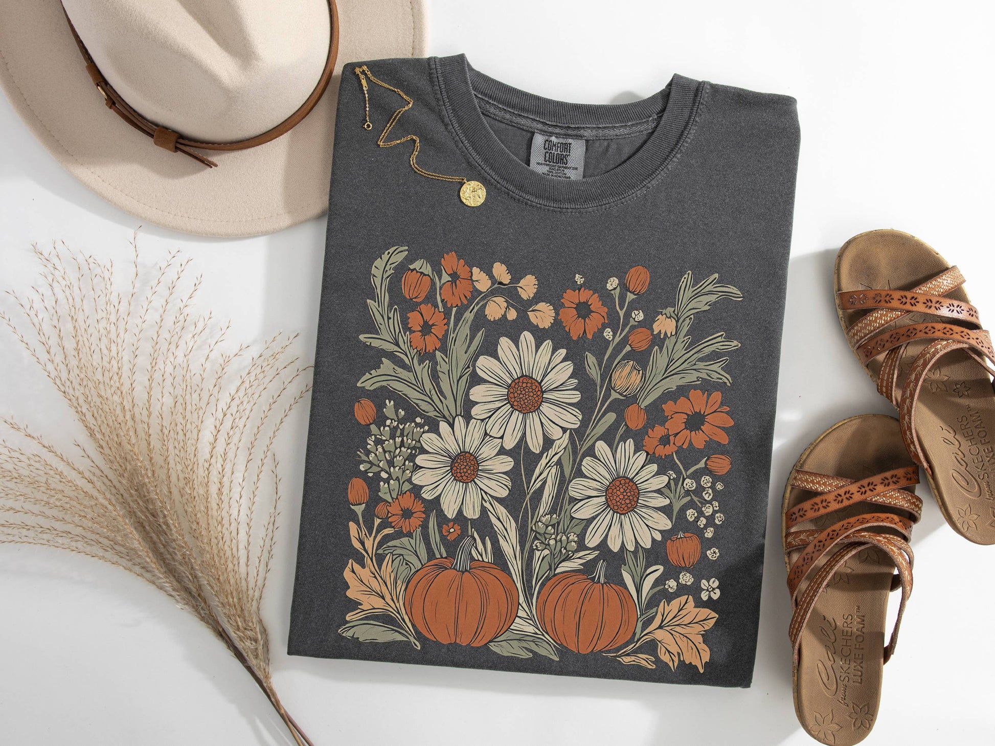 Celebrate fall in style with our Harvest Pumpkin Graphic Tee, featuring a charming pumpkin surrounded by wildflowers. Printed on a Comfort Colors pepper tee, this shirt is crafted from 100% ring-spun cotton and garment-dyed for that perfectly lived-in feel.
